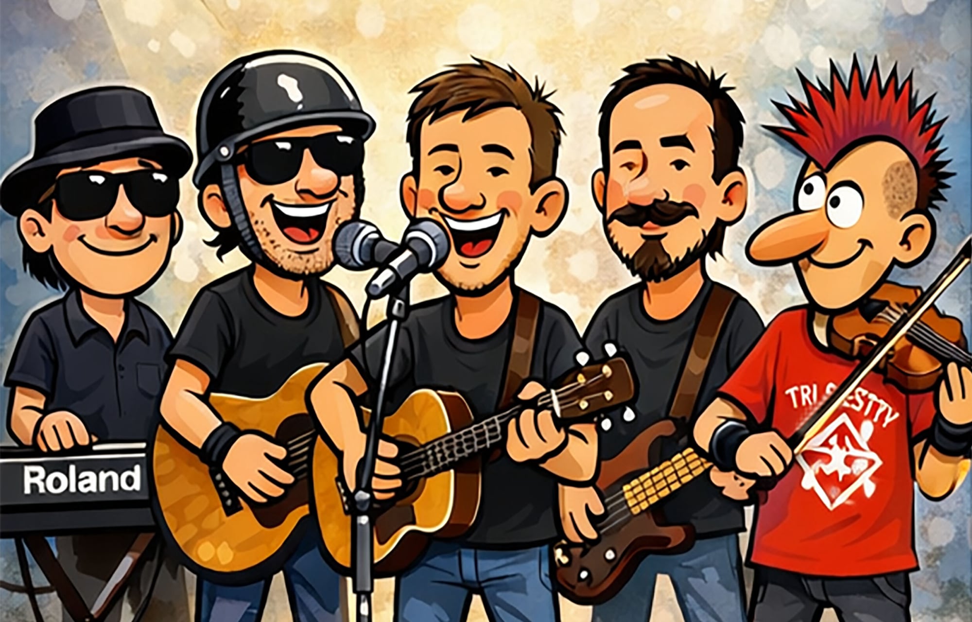 Skupinka boomerů hrajících pro potěšení vlastní i cizích bez vyhraněného hudebního žánru. Zahrajeme folk, pop, rock, lidovky či country, přesně podle gusta posluchačů.